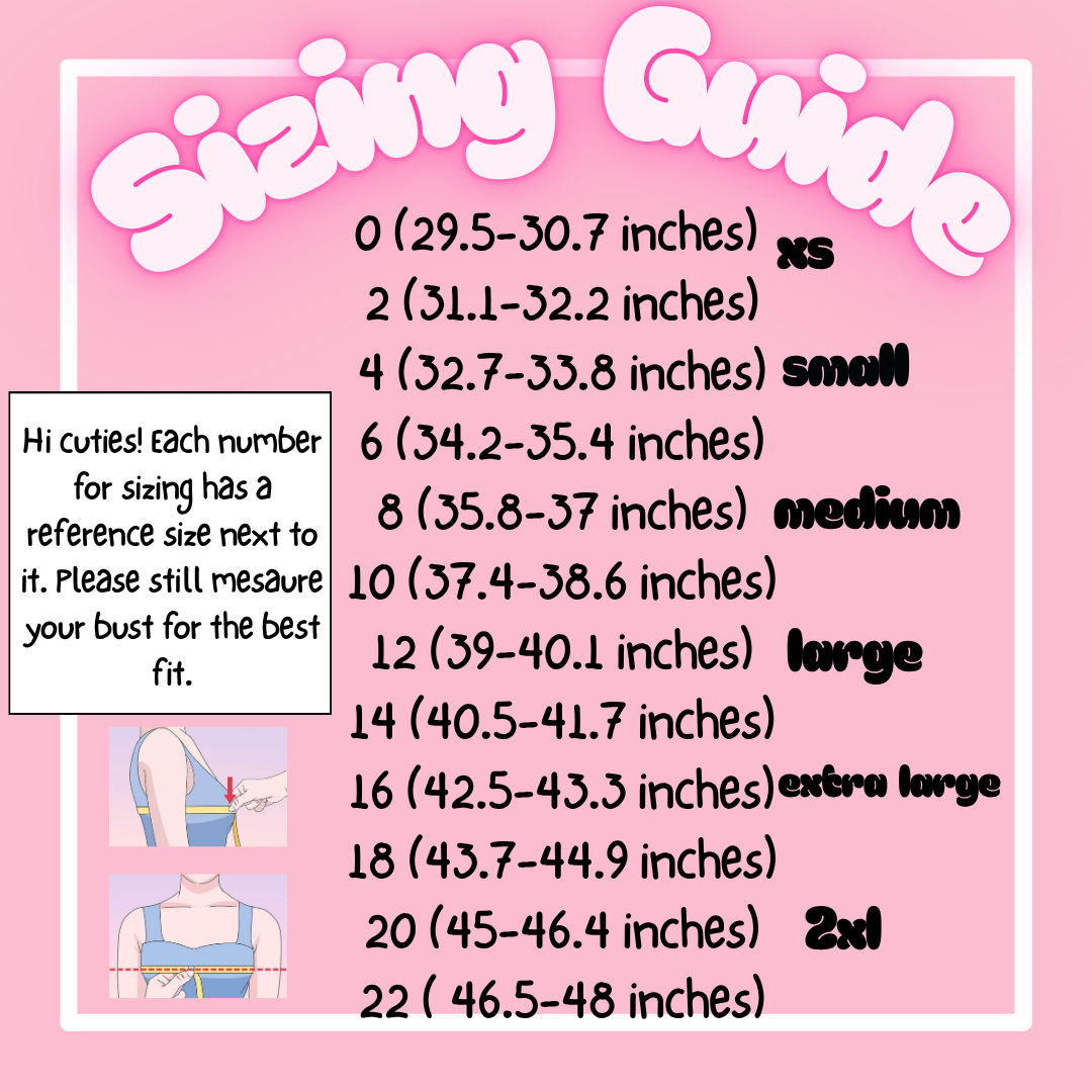 For the best fit please measure around the fullest portion of your bust. Your bra band size does NOT equal your corset size. Although it may be similar for some it is not for all. If you have any questions feel free to message me on my Instagram or email me at Overallcuties@gmail.com